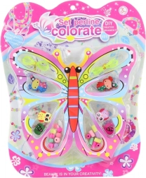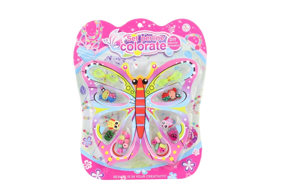 Šareni set drvenih perlica za male stvaratelje potiče maštu i finu motoriku. Sadrži različite oblike i boje, idealno za nizanje i izradu originalnih narukvica ili ogrlica. Pakirano na kartonu s motivom leptira. Dimenzije pakiranja cca 21,5 × 25,5 × 2 cm. Preporučeno za djecu od 3 godine.