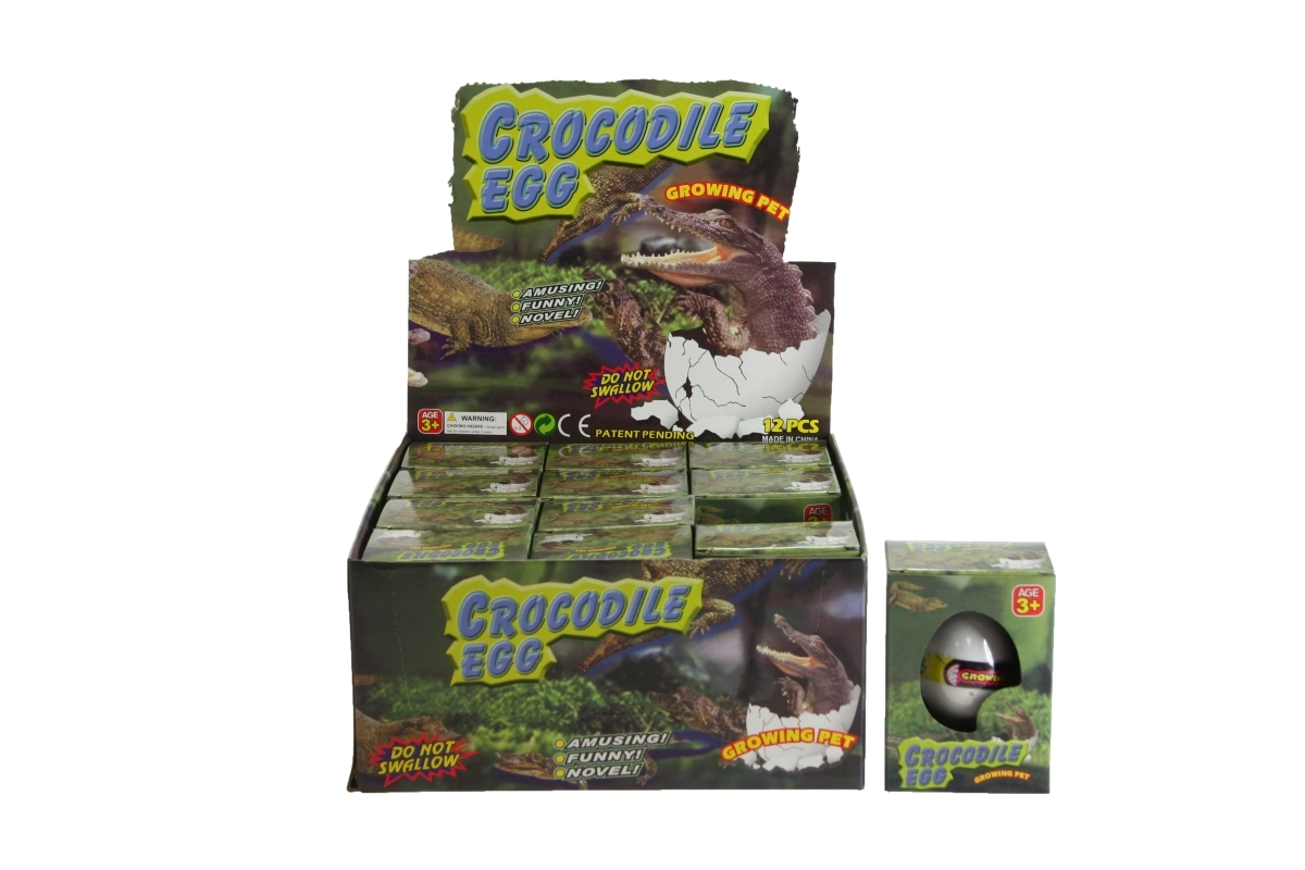 Zabavno jaje koje nakon uranjanja u vodu počinje pucati, a tijekom 48 sati iz njega naraste mali krokodil. Idealno kao šaljivi predmet za djecu i odrasle, potiče znatiželju, strpljenje i donosi iznenađenje pri svakom izlijeganju.