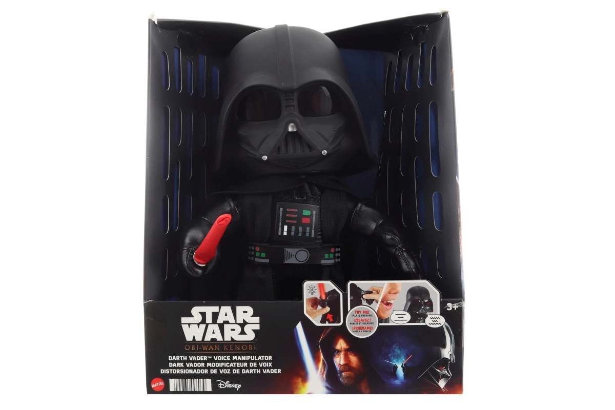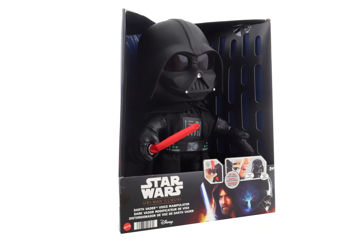 Omiljeni negativac iz galaksije daleko, daleko dolazi u obliku kvalitetnog plišanca koji će razveseliti i za igru i za kolekciju. Figurica Darth Vadera opremljena je svjetlećim mačem i modulatorom glasa, zahvaljujući čemu će se dječja mašta u potpunosti razigrati. Upravljanje je jednostavno – funkcije aktivirate pritiskom na ruku.