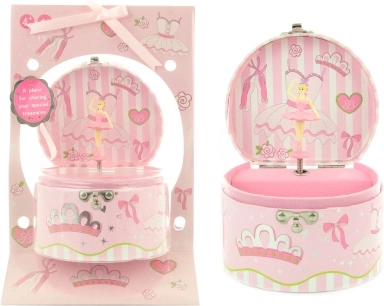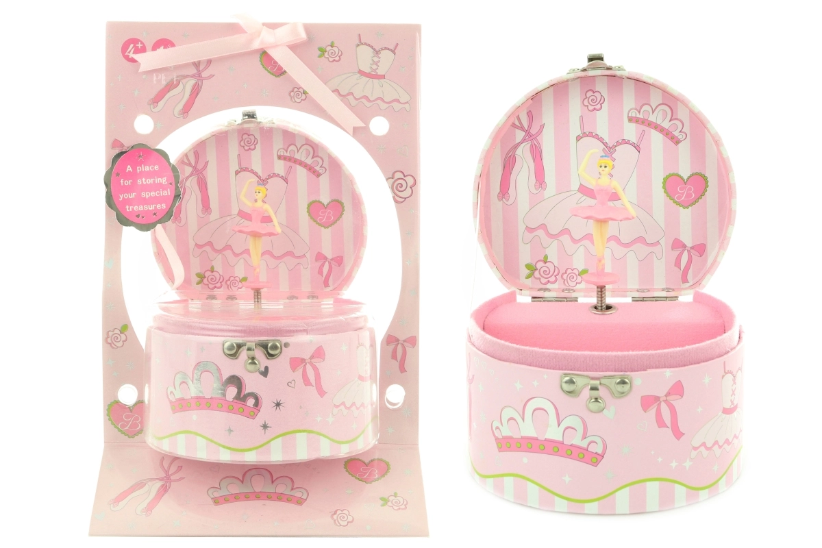 Ova elegantna glazbena kutija za nakit s balerinom nudi idealno mjesto za pohranu prstenčića, narukvica i drugih sitnica. Po otvaranju poklopca i navijanju ključića balerina graciozno pleše pred ogledalcem, a začuje se ugodna glazba. Zahvaljujući kompaktnih dimenzijama, kutija se lako smješta na noćni ormarić ili policu u dječjoj sobi.