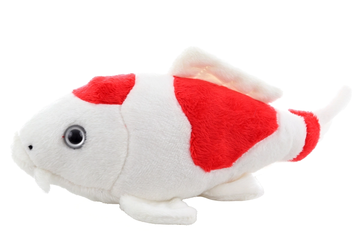 Ovaj mekani plišani koi šaran u bijelo-crvenoj izvedbi razveselit će svako dijete i ljubitelje životinja. Ugodno je mekan, lagan i savršeno leži u ruci, pa je odličan za maženje, igru i umirivanje prije spavanja.
