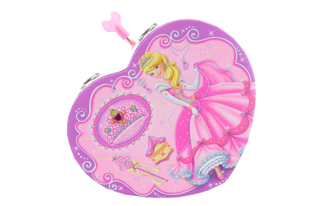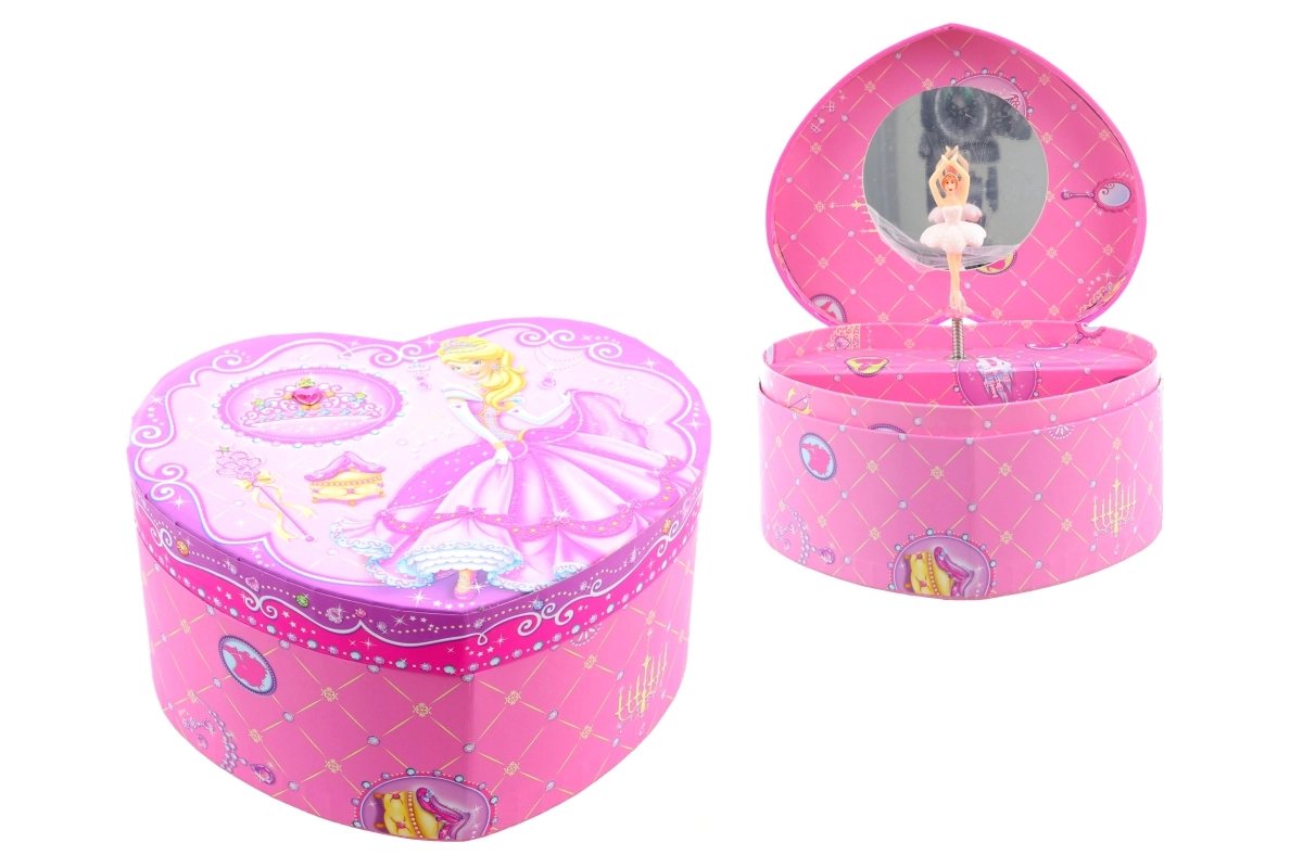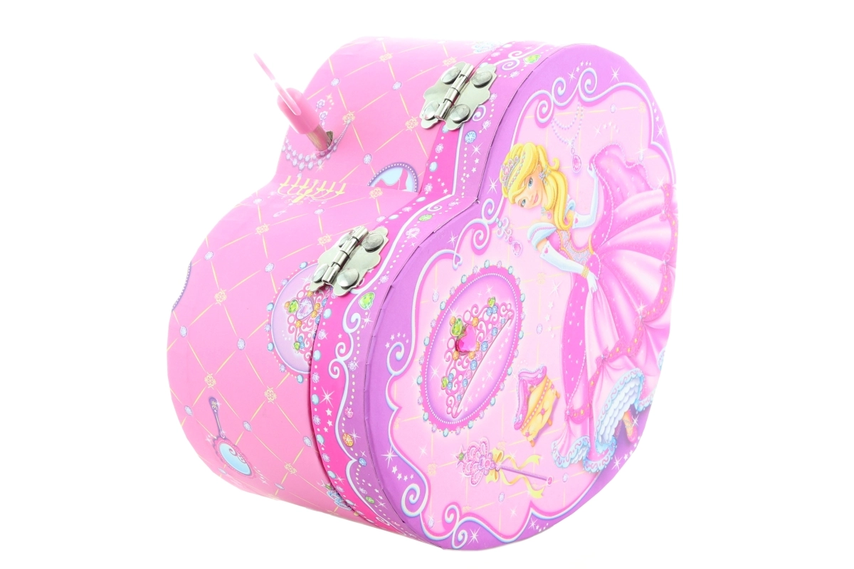 Čarobna glazbena kutijica za nakit u obliku srca s motivom princeze razveselit će svaku ljubiteljicu modnih dodataka. Nakon navijanja ključića iznutra će zaplesati balerina i zaoriti se nježna melodija. Praktično zrcalce, sigurno spremanje sitnica i preslatki dizajn čine ovu kutijicu idealnim dodatkom dječjoj sobi.