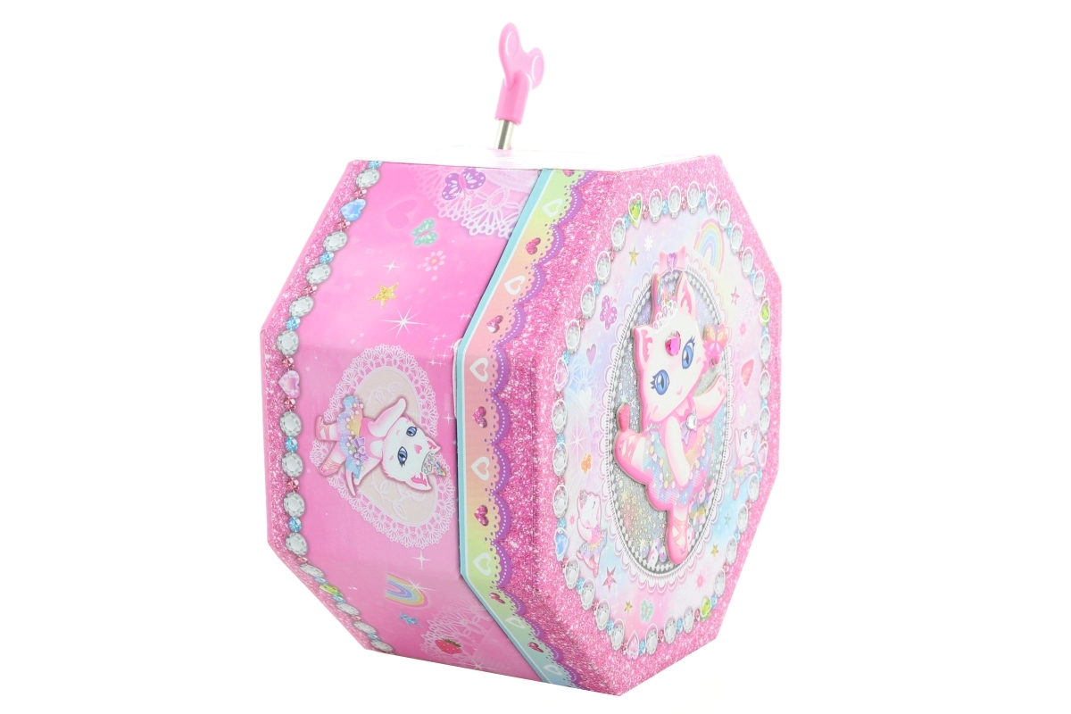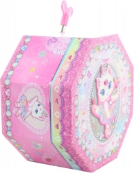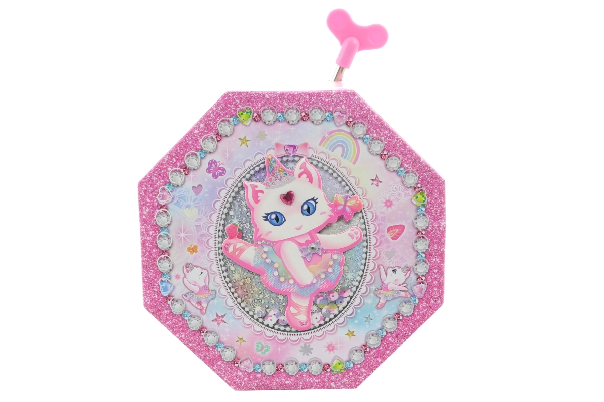 Čarobna ružičasta kutija za nakit s glazbenim mehanizmom i rotirajućom balerinom razveselit će svaku malu modu. Nakon navijanja ključića figurica se zavrti, a kutijica zasvira melodiju, dok se unutra nalaze praktične pregrade i zrcalce u obliku srca. Idealna za pohranu sitnog nakita i dragocjenosti, s preslatkim motivima mačkica i jednoroga te sjajnom površinom za očaravajući izgled, nježnu glazbu i sigurnu pohranu sitnica.