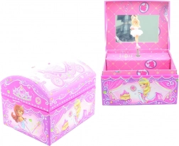 Ova šarmantna kutija za nakit s glazbenim mehanizmom oduševit će svako dijete koje voli red u svojim dragocjenostima i čarobne detalje. Nakon otvaranja poklopca u zrcalu se zavrti balerina i zazvuči melodija koja će izmamiti radostan osmijeh.