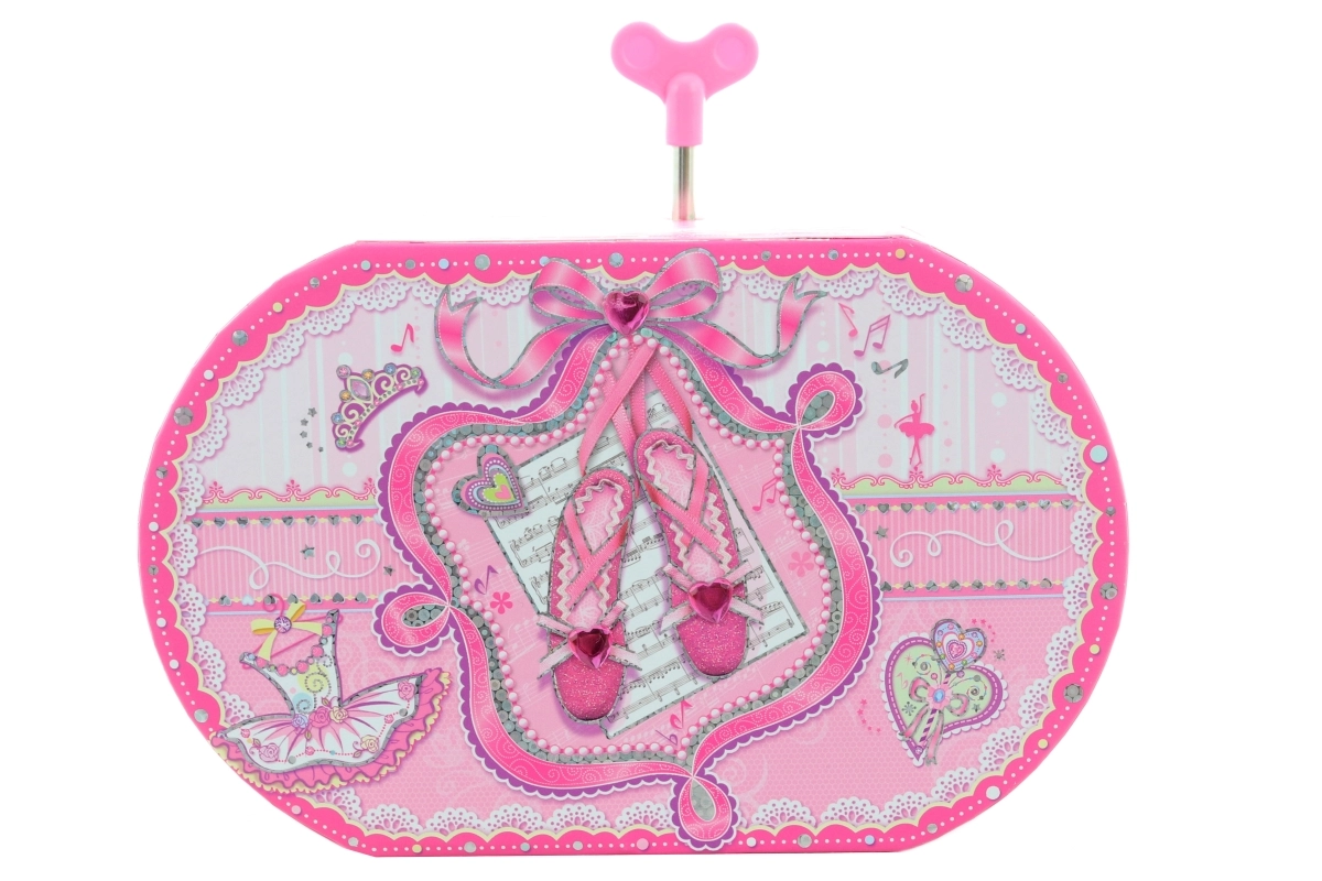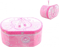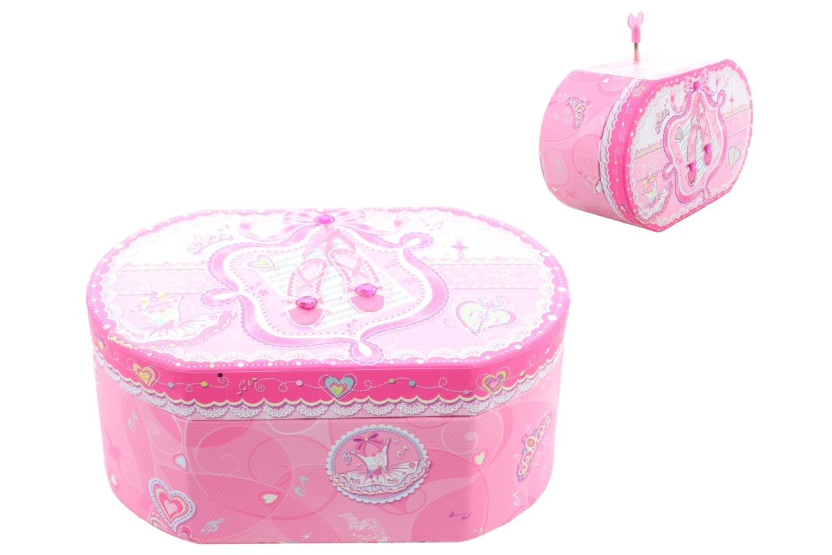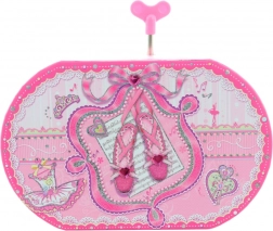 Elegantna ružičasta kutija za nakit s glazbenim mehanizmom i plesnom balerinom razveselit će male i velike ljubiteljice baleta. Unutra se nalazi ogledalce i prostor za sitan nakit. Nakon navijanja ključića balerina graciozno pleše, a zazvuči ugodna melodija. Kompaktne dimenzije cca 17 × 11 × 8 cm i nježan baletni motiv čine je prekrasnom dekoracijom i praktičnim dodatkom za toaletni stolić.
