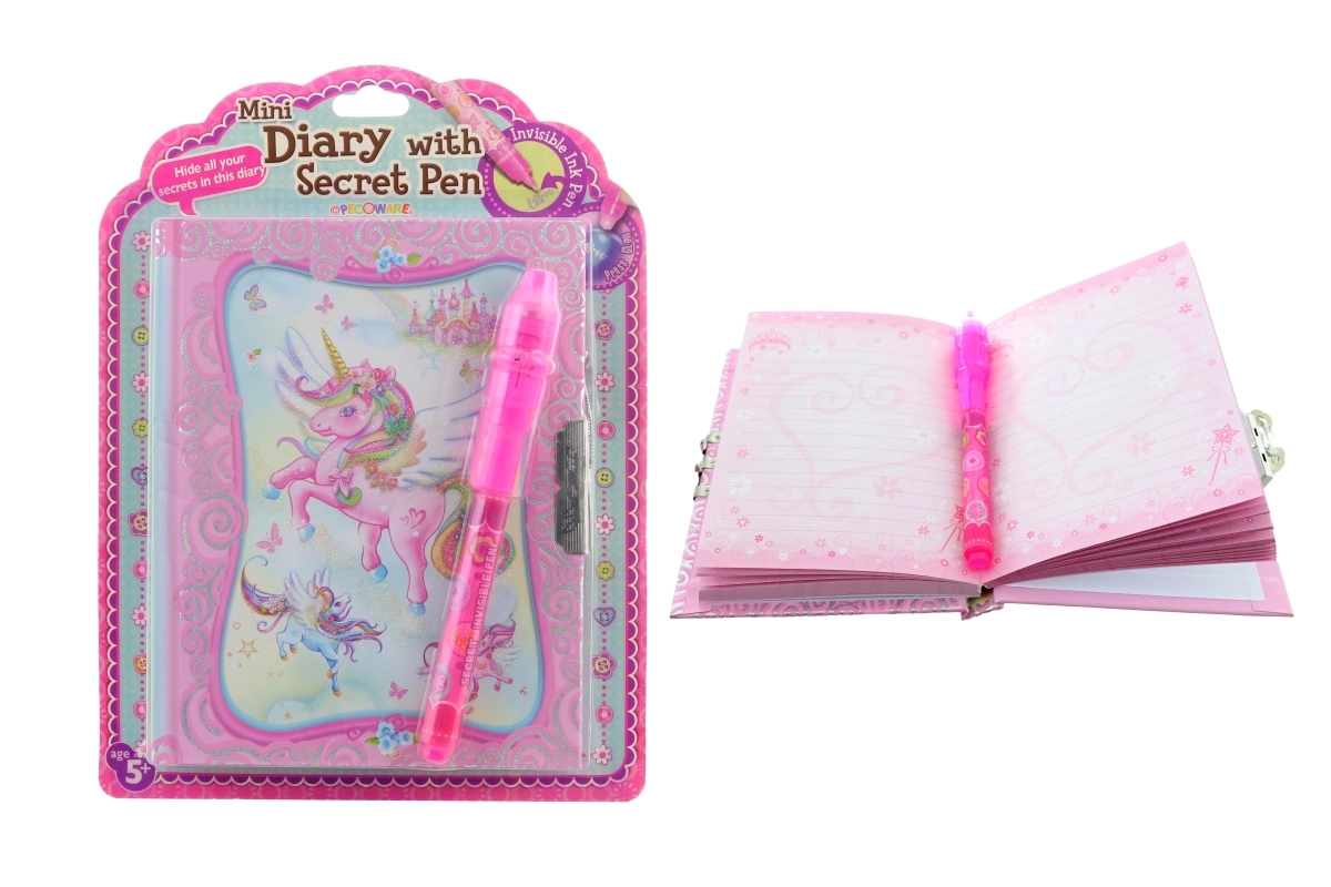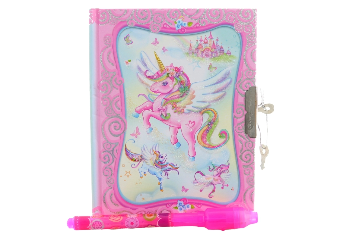 Otkrij svijet tajni s originalnim dnevnikom s motivom jednoroga. Posebna olovka s nevidljivom tintom omogućuje pisanje poruka koje su vidljive samo pod UV svjetlom integriranim u čep olovke. Idealno za dnevničke zapise, tajne poruke i zabavno pisanje s prijateljicama.