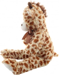 Ova velika plišana žirafa (cca 55 × 25 × 15 cm) stvorena je za beskrajno maženje. Nježno, pahuljasto krzno u smeđe-krem uzorku nježno je prema dječjoj koži, a izvezeni detalji lica osiguravaju sigurnost i za najmlađe. Zahvaljujući laganom i mekom punjenju lako se drži i grli.