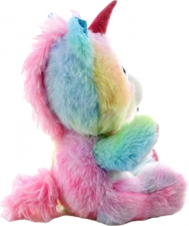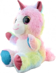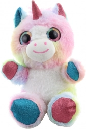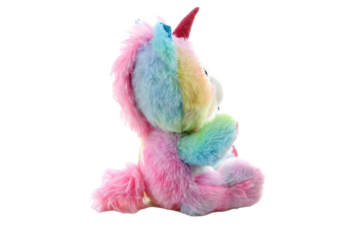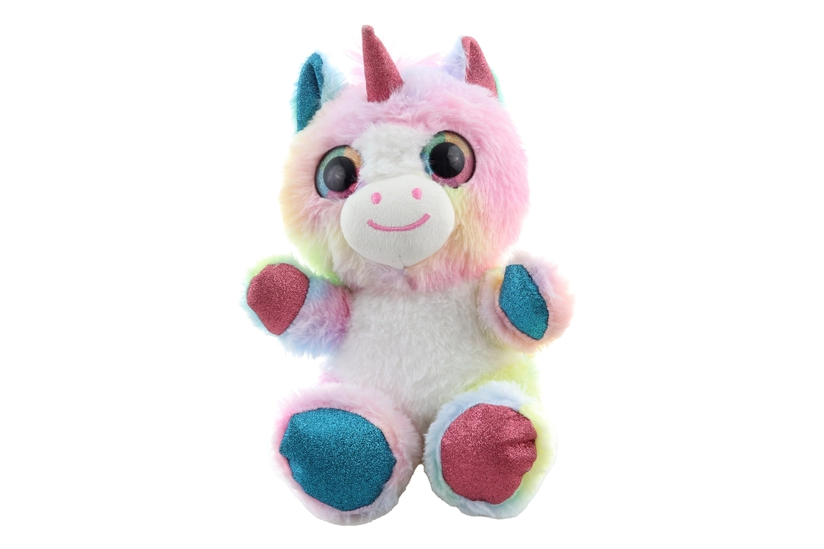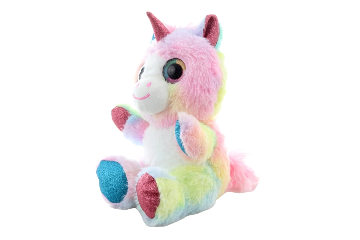 Ovaj šareni plišani jednorog osvojit će srca djece nježnom teksturom i čarobnim izgledom. Pastelne duge nijanse, svjetlucavi detalji na rogu, ušima i kopitcima te velike vezeno izrađene oči čine ga sjajnim prijateljem za igru i uspavljivanje.