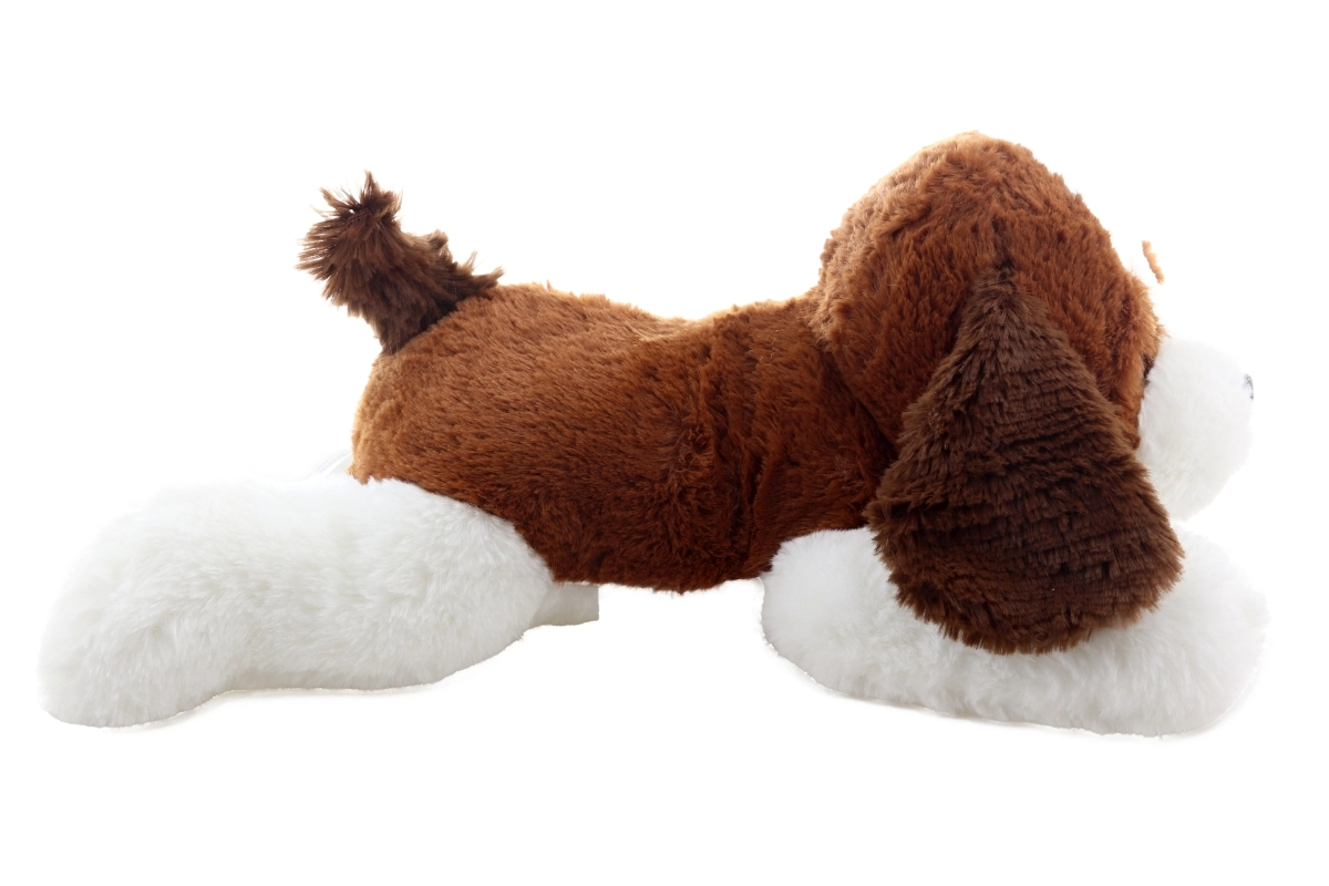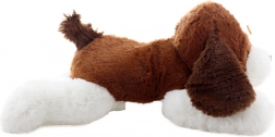 Ovaj svijetli plišani psić sa smeđim uškama i bijelim šapicama brzo će osvojiti srca malih i velikih. Zahvaljujući mekoj površini i ležećem položaju, sjajan je za maženje, odmor i kao dekoracija dječje sobe. Sigurna izrada bez malih odvojivih dijelova prikladna je za bebe.