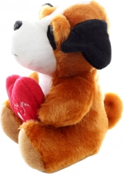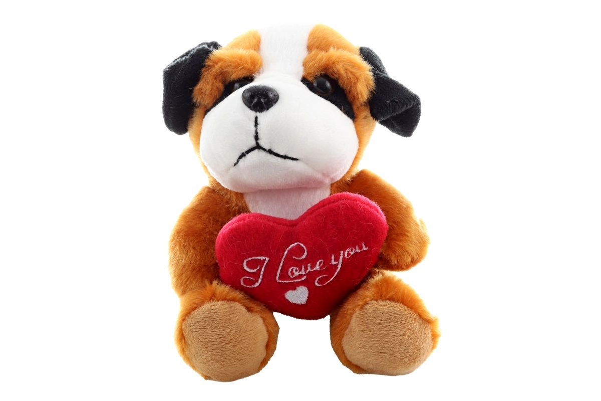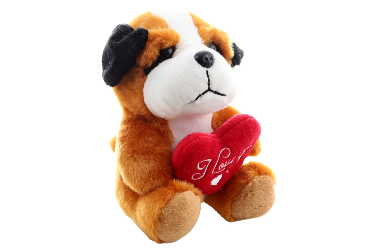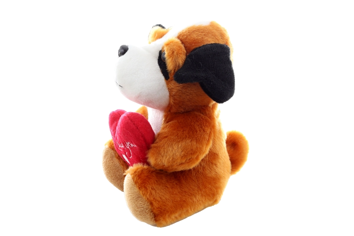 Ovaj mekani plišani psić sa srčekom odmah će osvojiti srca djece i odraslih. Kombinacija smeđe-bijelog krzna, slatkih ušiju i crvenog srca s natpisom „I love you“/„I love U“ čini ga savršenim poklonom za Valentinovo, rođendane ili jednostavno za radost.