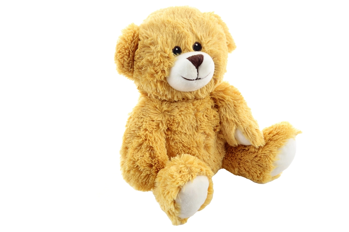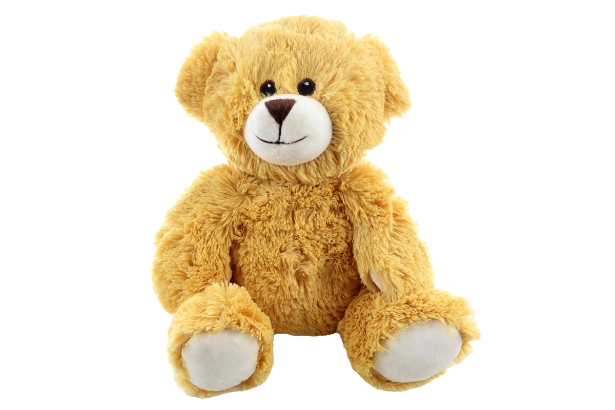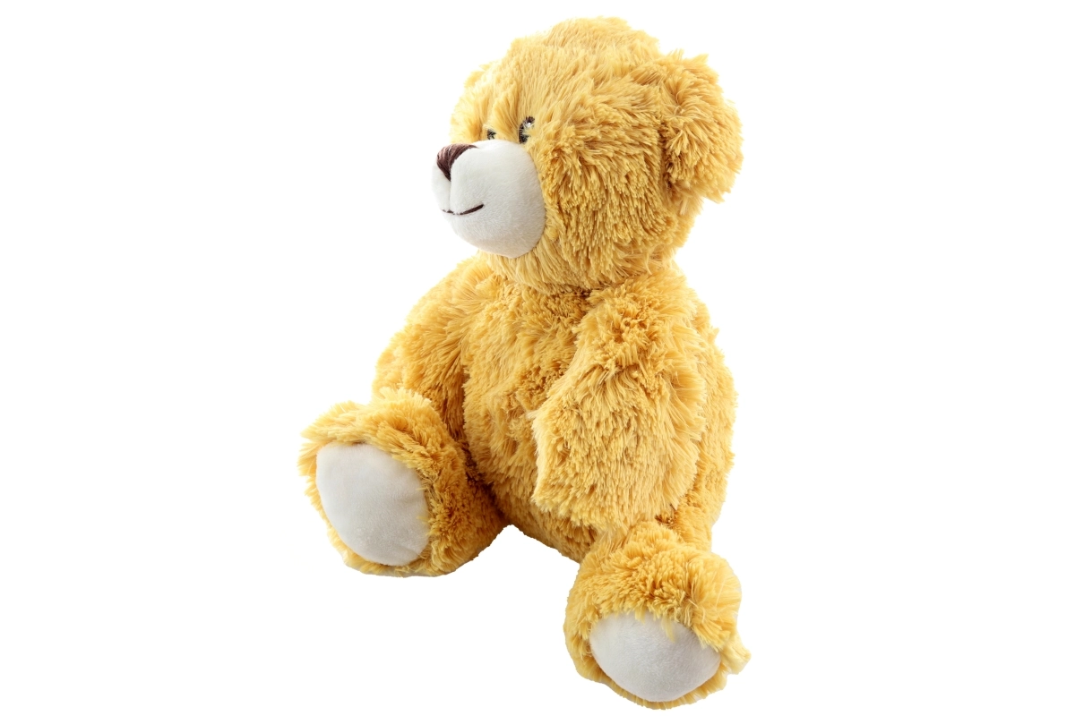 Ovaj klasični plišani medo u bež‑zlatnoj nijansi ima mekanu dlaku, bijelu njuškicu i šapice te nježno izvezen osmijeh. Dizajniran je tako da pruža maksimalnu udobnost i sigurnost pri maženju i uspavljivanju.