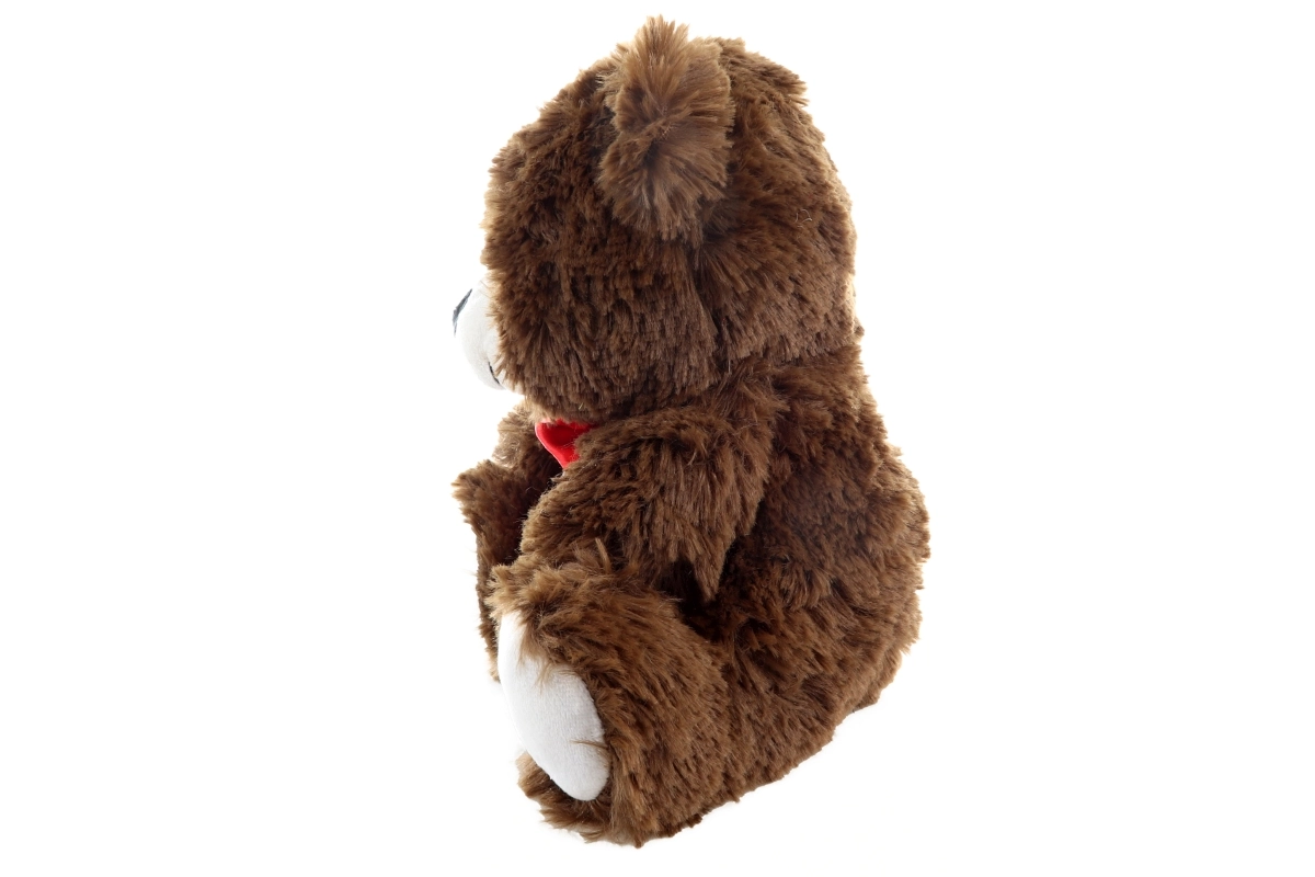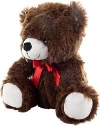 Ovaj tamnosmeđi plišani medo osvojit će srca i djece i odraslih. Ima meke dlačice, kontrastne bijele šapice i njuškicu, izražajne okice i slatku crvenu mašnu. Zahvaljujući kvalitetnoj izradi i mekoj ispuni savršen je za grljenje, uspavljivanje i kao dekoracija dječje sobe.