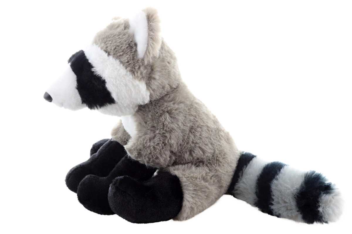 Karakteristična crna maska, šapice i prugasti rep daju igrački sladak i vjeran izgled.