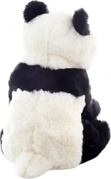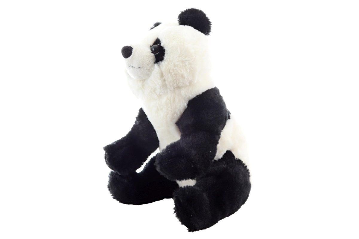 Plastične oči, okrugle uške i precizni šavovi upotpunjuju realističan izgled pande u sjedećem položaju.