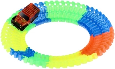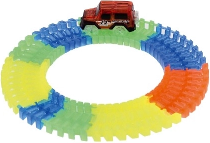 Uživajte u sjajnim utrkama sa svjetlećom fleksibilnom trkaćom stazom koju ćete lako sastaviti prema vlastitoj mašti. Dijelovi se jednostavno spajaju, a stazu možete u svakom trenutku preoblikovati – ravnine, zavoje pa čak i petlje savladava zahvaljujući savitljivim segmentima bez problema.