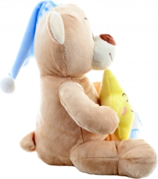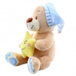 Mekani pliš, umirujuća plava kapica i žuta zvjezdica pomažu stvoriti ugodnu atmosferu prije spavanja.