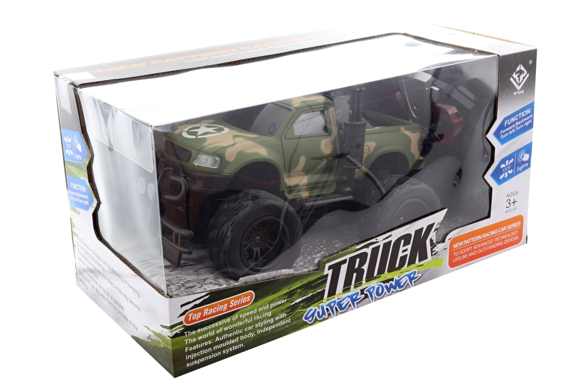 Uđite u svijet off‑road zabave s vojnim RC džipom koji oduševljava maskirnim dizajnom, povišenim podvozjem i robustnim kotačima. Zahvaljujući prednjim svjetlima vožnja je atraktivna i u polumraku, a jednostavno daljinsko upravljanje izvrsno je za početnike.