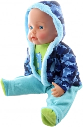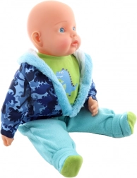 Ova velika lutka beba dječak izvrstan je pratitelj za svakodnevnu igru. Zahvaljujući mekanom tjelešcu ugodno se drži i grli, dok realistična glava i završeci udova od plastike doprinose autentičnom izgledu. Moderan set odjeće s dinosaurovim motivom jednostavno se skida i ponovno oblači – idealno za vježbanje fine motorike i maštovitu igru.