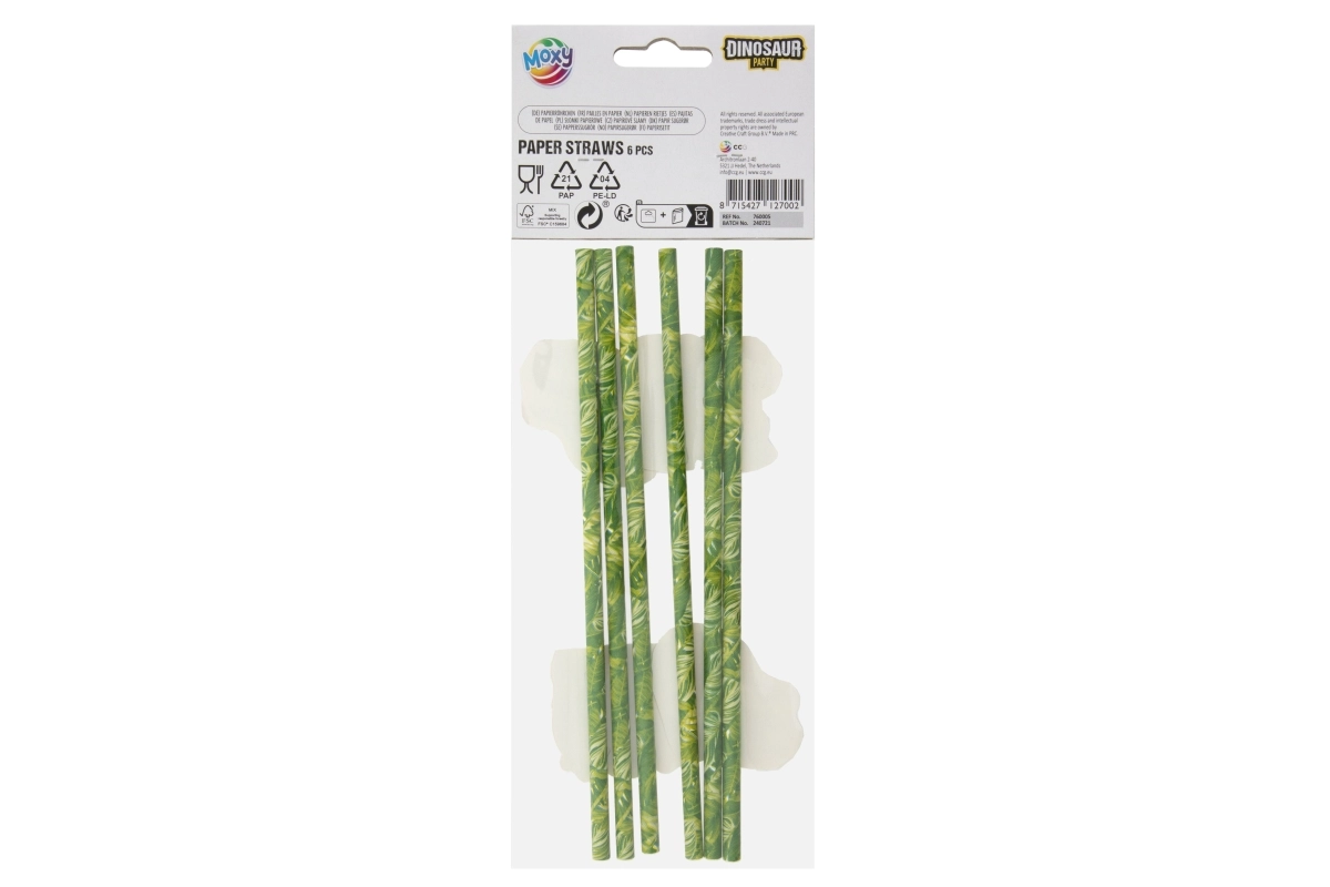 Stilske papirnate slamke s dinosaurovim uzorcima za svaku zabavu ili proslavu. Ekološki izbor koji stolu daje zabavu i boje. Pakiranje sadrži 6 komada, duljina slamke cca 19,5 cm, idealno za hladna pića i dječje proslave. Bez plastike, lako se recikliraju.