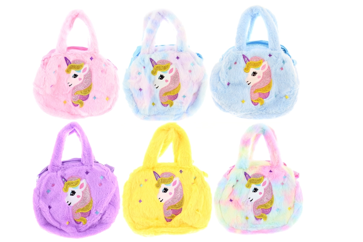 Slatka plišana torbica s motivom jednoroga razveselit će ljubitelje čarobnih modnih dodataka. Nudi 1 pretinac na patentni zatvarač, udobnu ručku za nošenje u ruci i podesivi naramenica remen. Idealna za sitnice za svaki dan. Proizvod nije igračka.