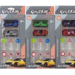 Zabavan set metalnih autića s realističnim plastičnim prometnim znakovima za male vozače. Odlično za razvoj mašte i učenje prometnih pravila, idealno kao poklon za djecu od 3 godine naviše.
