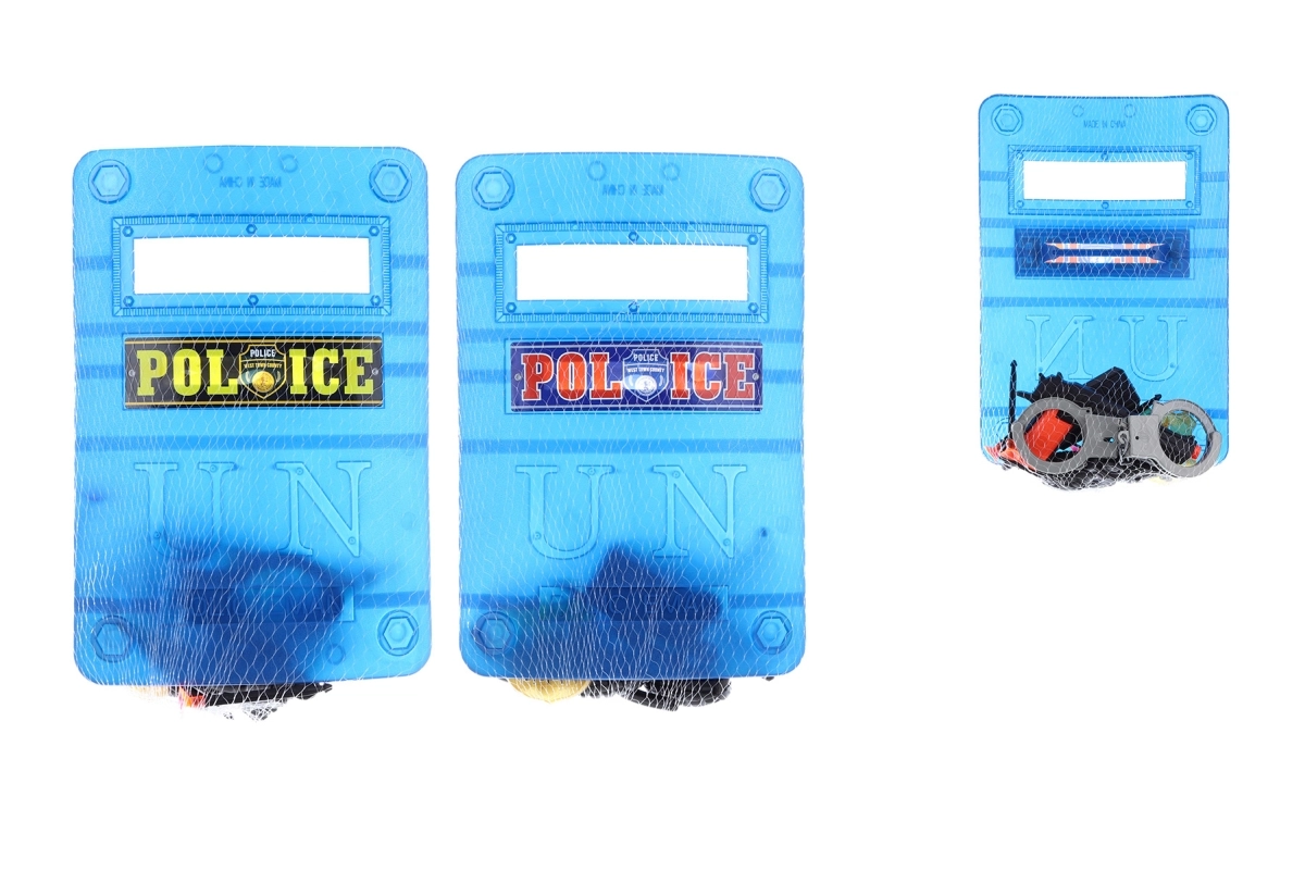 Dječji policijski set donosi sve za uzbudljivu igru čuvara reda. Sadrži štit, voki-toki, lisice, pištolj s 3 metka s vakuumskom čašicom, 2 granate i značku. Izrađeno od izdržljive plastike, pakirano u mrežici. Idealno za djecu od 3 godine.