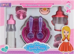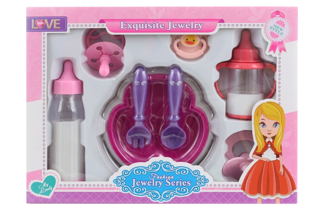 Proširite svijet dječje igre praktičnim i preslatkim priborom za lutke. Ovaj set nudi sve što malim njegovateljima treba – od hranjenja do umirivanja lutke. Sadrži bočicu, tanjurić s priborom, 3 dudice i šalicu. Idealan za djecu od 3 godine i odličan dodatak svakoj lutki.