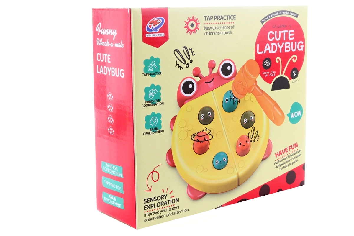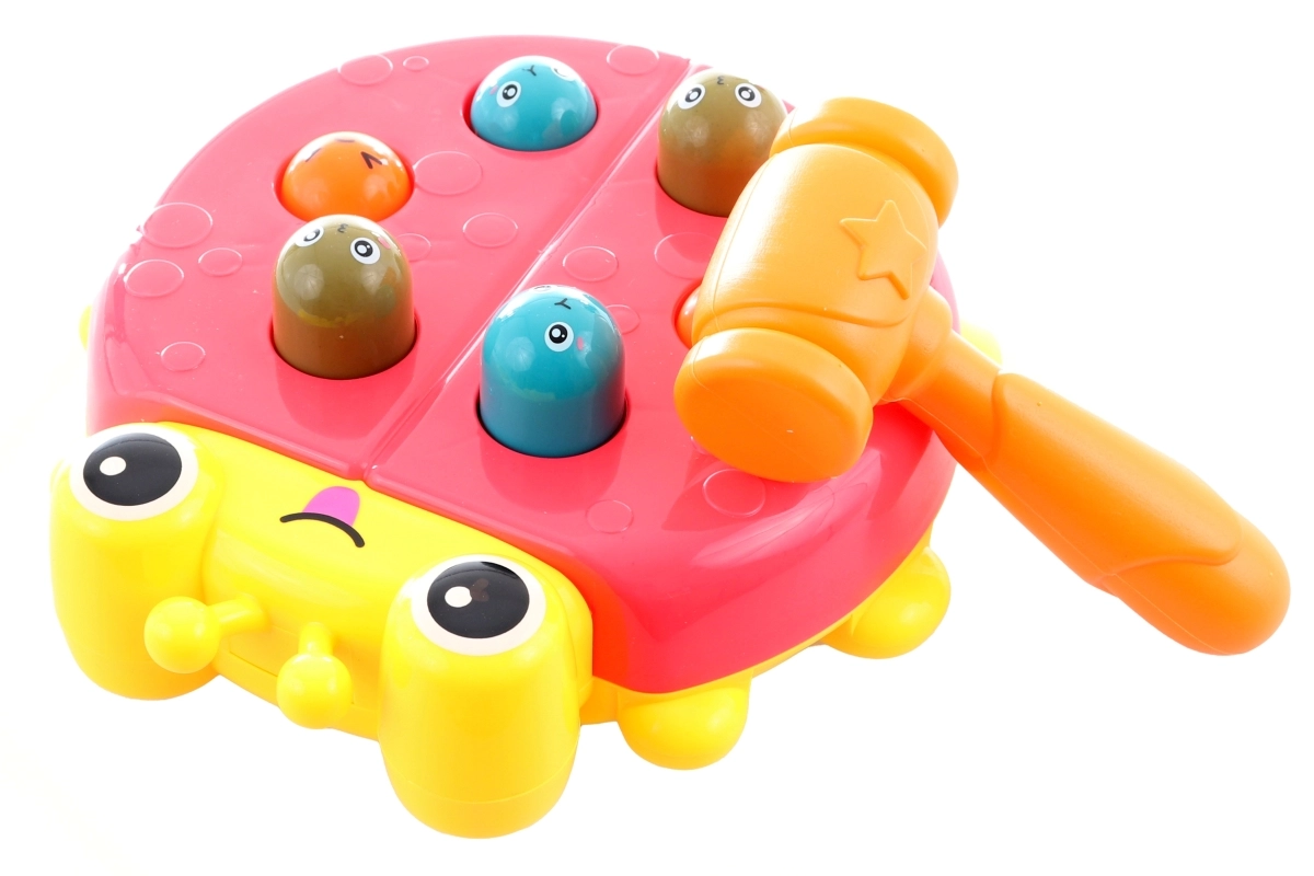 Zabavna i sigurna igračka za najmlađe – udaraljka u obliku bubamare. Potiče finu motoriku, koordinaciju oko–ruka i uči djecu principu uzroka i posljedice: nakon udarca jedne glavice iskoči druga. Izdržljiva plastična izrada i praktično pakiranje u kutiji.