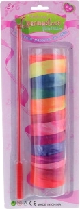 Šarena gimnastička vrpca za male ljubitelje pokreta. Nudi zabavan trening koordinacije i gracioznih pokreta. Lagana plastična štap duljine oko 35 cm udobno leži u ruci, žive boje potiču kreativni ples i igru. Idealna kao igračka za djecu od 3 godine za kuću i vani.