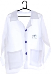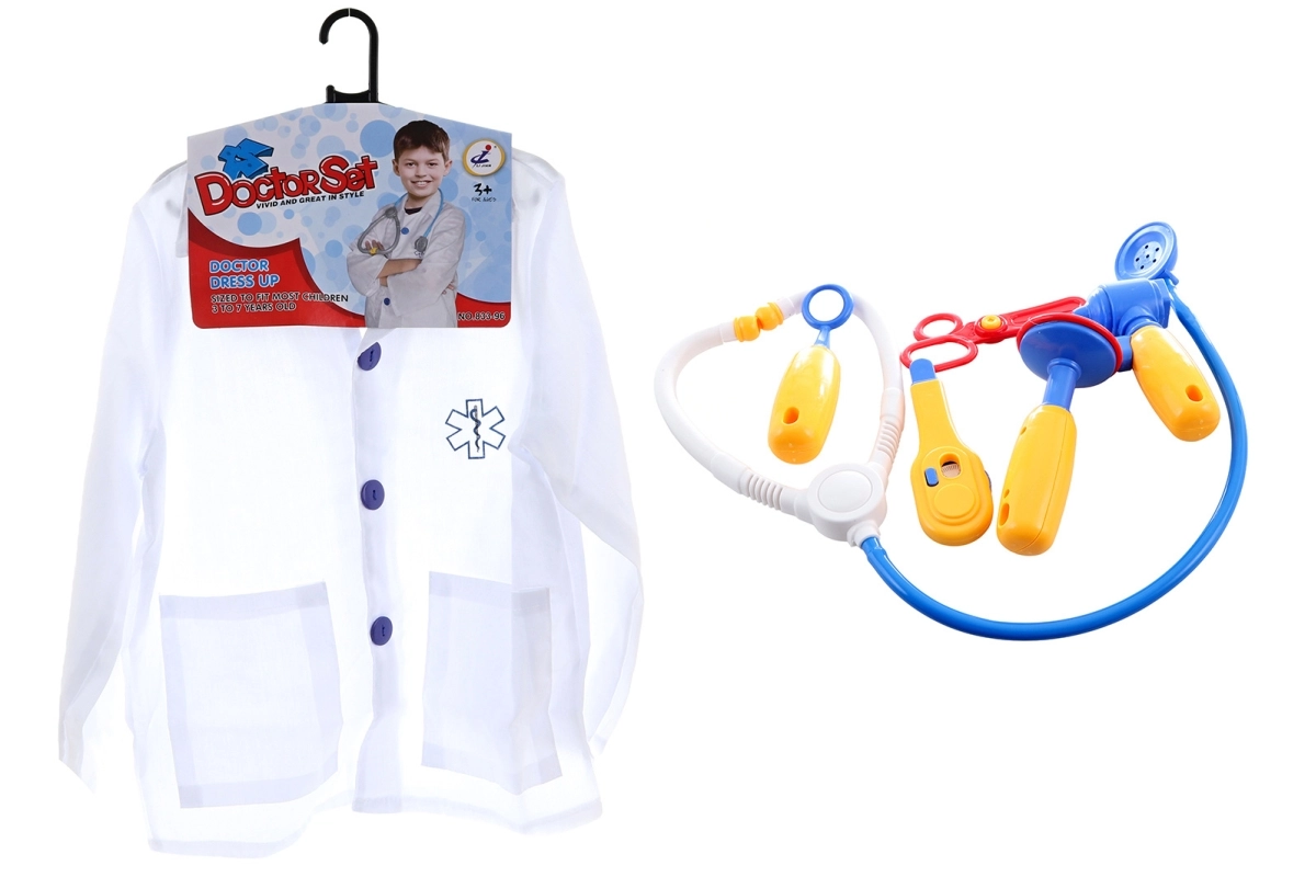 Dječji kostim doktorica donosi sve što je potrebno za zabavnu igru ordinacije. Plašt s dugim rukavima je lagan i udoban, s praktičnim džepovima za odlaganje pomagala. Set plastičnih instrumenata (npr. stetoskop, toplomjer ili injekcija) potiče razvoj mašte, empatije i fine motorike.
