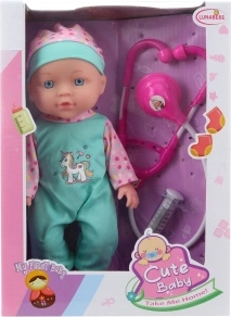 Set uključuje dječji stetoskop i injekciju sa sigurnim oblicima koji potiču kreativnu i imitativnu igru. Zahvaljujući kompaktnoj veličini od 27 cm, lutka je idealna za dječje ruke i lako stane u kolica za lutke. Pakirano u poklon-kutiji – odlična ideja za dar.