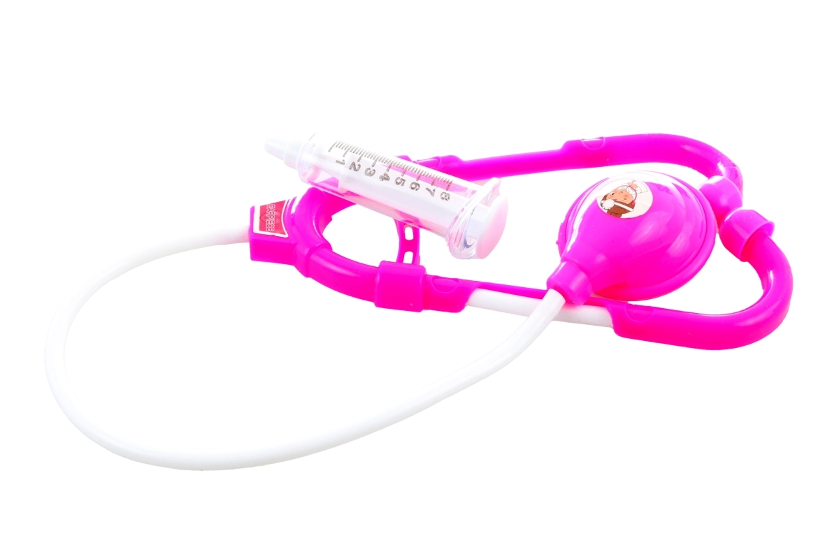 Dio pakiranja je dječji stetoskop i injekcija s oblim oblicima za sigurnu i kreativnu igru uloga. Djeca uče brinuti i razvijaju empatiju.