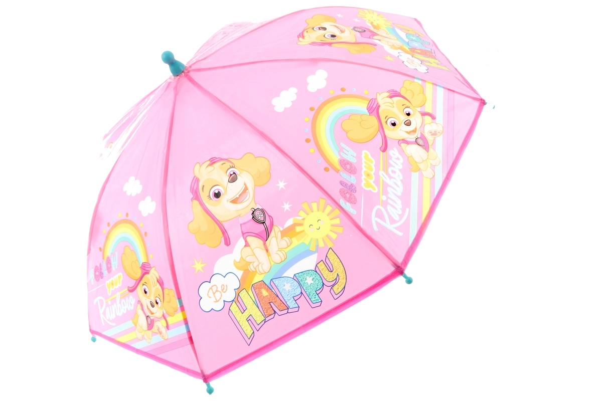 Ovaj stilski ružičasti kišobran s veselim slikama psića, duge i natpisima poput „Be Happy” i „Follow your Rainbow” razveselit će svakog malog obožavatelja PSIĆA U OPHODNJI. Zahvaljujući kupolastom obliku pruža pouzdanu zaštitu od kiše i pritom odlično izgleda.