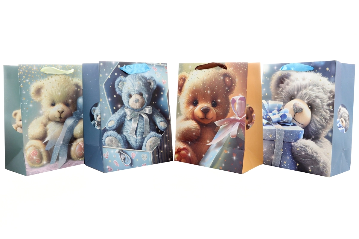 Stilska poklon-vrećica s preslatkim motivom medvjedića razveselit će pri svakoj predaji poklona. Izrađena je od kvalitetnog papira i nudi praktičnu dimenziju 18 × 23 × 10 cm. Idealna za manje do srednje velike poklone i brzo, elegantno pakiranje. Izdržljiv papir, univerzalan dizajn i jednostavna uporaba.