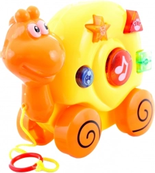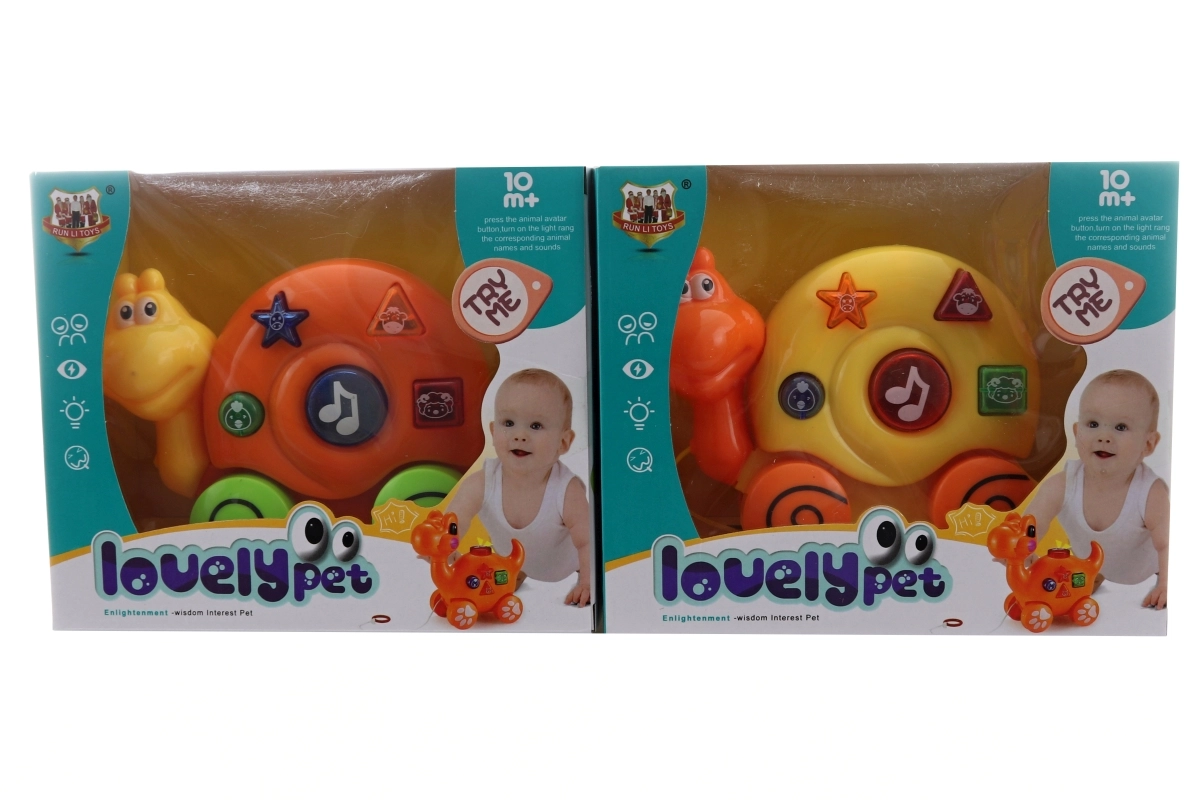 Ovaj šareni povlačni puž idealna je prva igračka na uzici. Pri kretanju emitira vesele melodije i zvukove životinja, čime potiče dječju znatiželju i razvija osjetila. Zahvaljujući robusnoj plastičnoj izvedbi siguran je i izdržljiv za svakodnevnu igru.