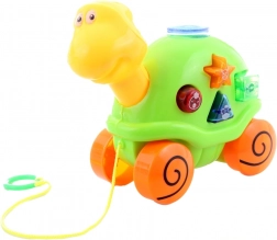 Ova šarena vučna kornjačica idealna je igračka za malu djecu od 10 mjeseci. Tijekom kretanja reproducira vesele melodije i realistične zvukove životinja, koji potiču djecu na hodanje, puzanje i istraživanje. Izdržljiv plastični materijal osigurava jednostavno održavanje i dug vijek trajanja.