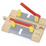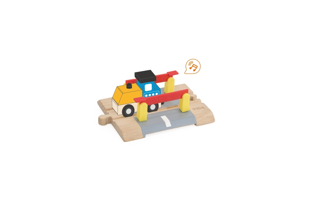 Ovaj kvalitetno izrađen drveni prijelaz odlično će upotpuniti svaku prugu za vlakiće i cestovni set. Pomične crvene rampe i uočljivi stupići vjerno oponašaju stvarni promet, pa se djeca lako udube u igru i osmišljavaju vlastite prometne situacije.