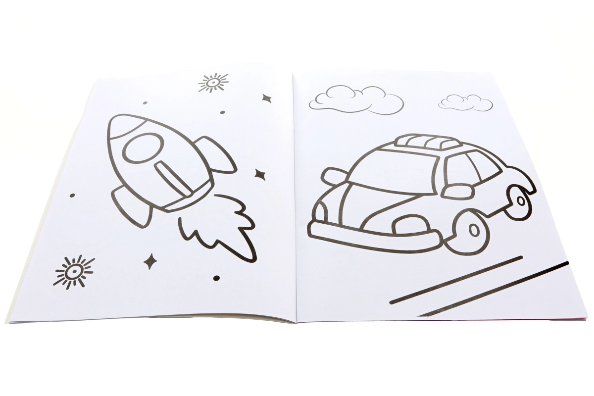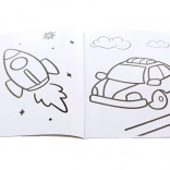 Otkrijte svijet automobila, vlakova, brodova i drugih strojeva u tematskim bojankama koje razvijaju finu motoriku, kreativnost i strpljenje. Zahvaljujući priloženim naljepnicama djeca mogu ukrasiti crteže i stvoriti vlastite prometne prizore.
