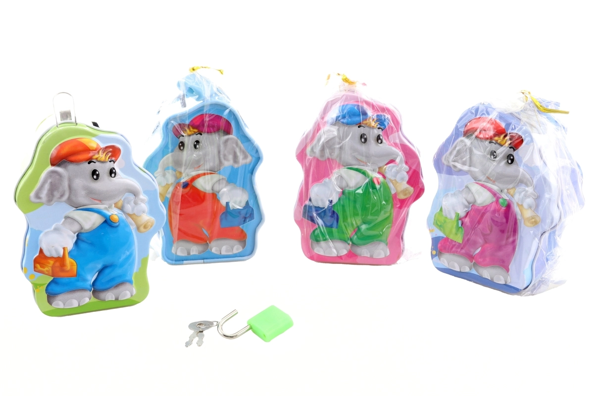 Stilna metalna kasica u obliku slona s lokotom i 2 ključa praktično je rješenje za sigurno odlaganje sitnih ušteđevina. Kompaktne dimenzije 8 × 10,5 × 4,5 cm i izdržljiva izvedba osiguravaju dug vijek trajanja i lako prenošenje.