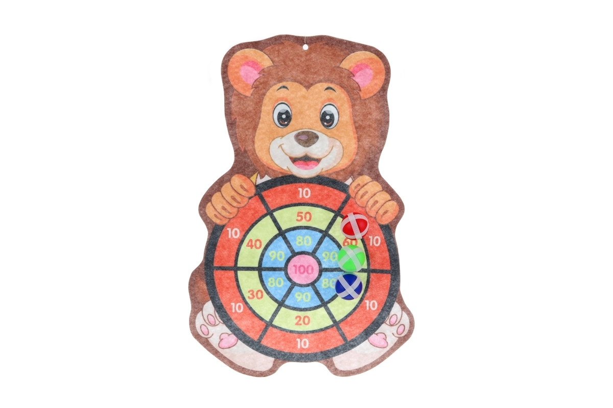 Zabavna dječja meta s motivom lava na čičak donosi sate sigurne igre i vježbanja preciznosti. U kompletu su meta, 3 mekane loptice s čičkom i kuka za vješanje. Idealno za djecu od 3 godine – sigurna alternativa klasičnim pikadima, odlična za dječju sobu i za putovanja.