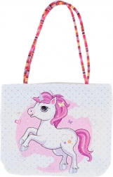 Ova šarmantna torba s motivom jednoroga izvrsna je opcija za svakodnevno nošenje. Zahvaljujući eko koži sa sjajnom završnom obradom odolijeva vlazi, lako se čisti i dugo izgleda kao nova. Kompaktne dimenzije 26 × 20 cm udobno primaju sitnice, telefon i novčanik, a da vas ne opterećuju.