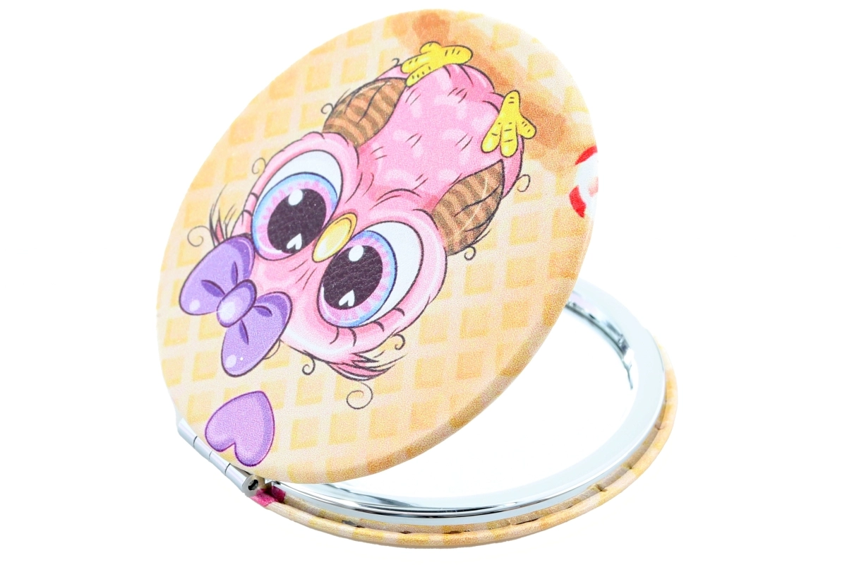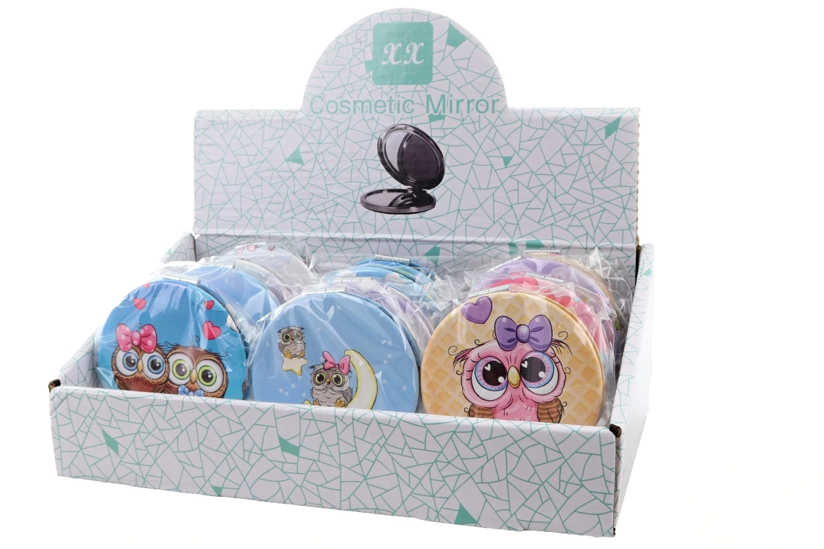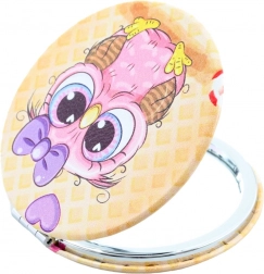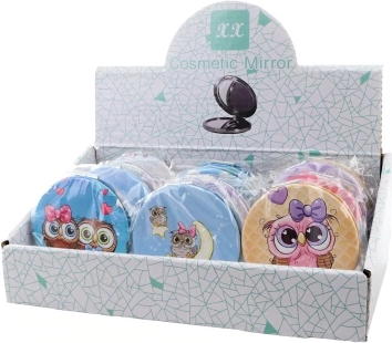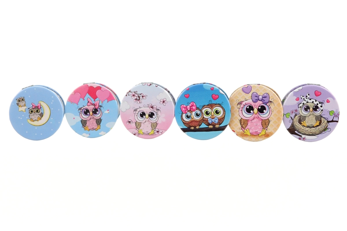 Nakon otvaranja pronaći ćete duplo zrcalce – praktično za detaljna podešavanja make-upa ili brzu provjeru frizure tijekom dana. Zrcalca se isporučuju u različitim dizajnima s motivima sovičica; konkretna varijanta odabire se prema zalihama.