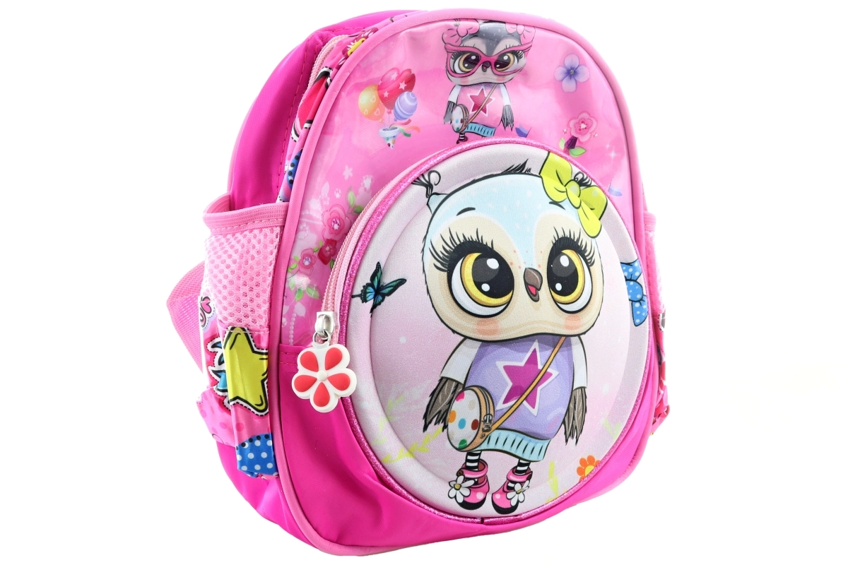 Ovaj lagani i praktični ruksak u ružičastoj boji s velikom sovićom idealan je za sitnice na putu i u vrtiću. Glavna komora stane užinu, igračku i kabanicu, a prednji okrugli džep odličan je za ključeve ili maramice. Profilirana prednja strana i kvalitetni patentni zatvarači s dekorativnim privjescima daju ruksaku stil i izdržljivost.