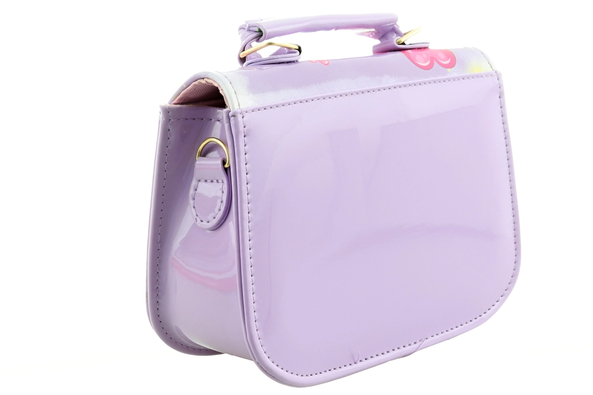 Ova mala ljubičasta torbica sa slatkim zečićem, balonima i srcima očarat će na prvi pogled. Sjajni materijal, precizno prošivanje i čvrsta konstrukcija osiguravaju da torbica dobro drži oblik i odolijeva uobičajenoj upotrebi. Jedan pregledan pretinac i jednostavno kopčanje na druker olakšavaju svakodnevno korištenje.