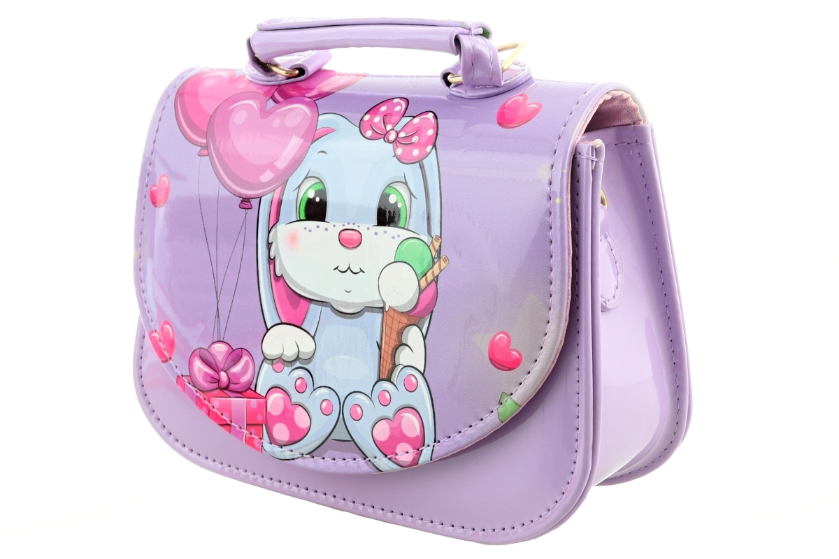 Dječja sjajna torbica s zečićem preko ramena, ljubičasta