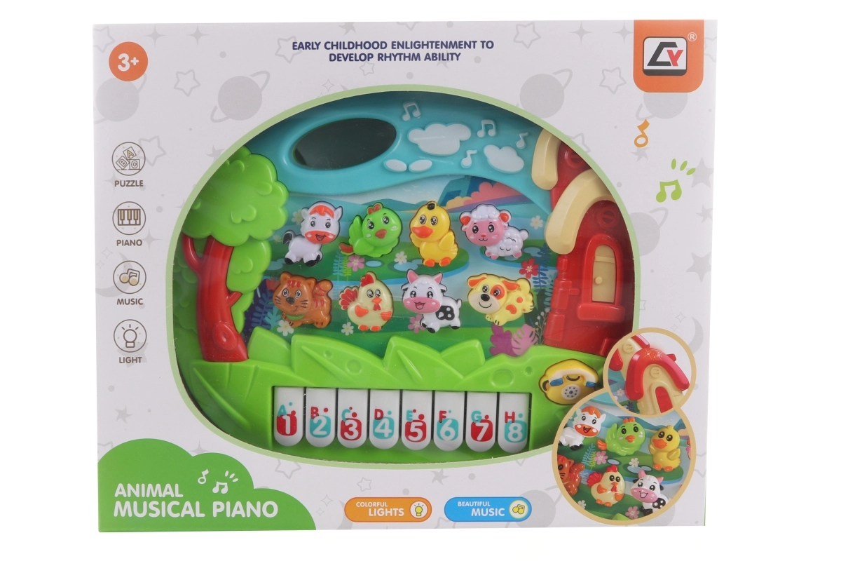Otkrijte zabavno dječje pijanino sa životinjama koje razvija ritam, sluh i finu motoriku. Nudi 8 tipki s melodijama i 8 gumbi sa zvukovima životinja, uz svjetlosne efekte i jednostavno rukovanje za djecu od 3 godine. Idealna igračka za prvi susret s glazbom i zvukovima s farme.