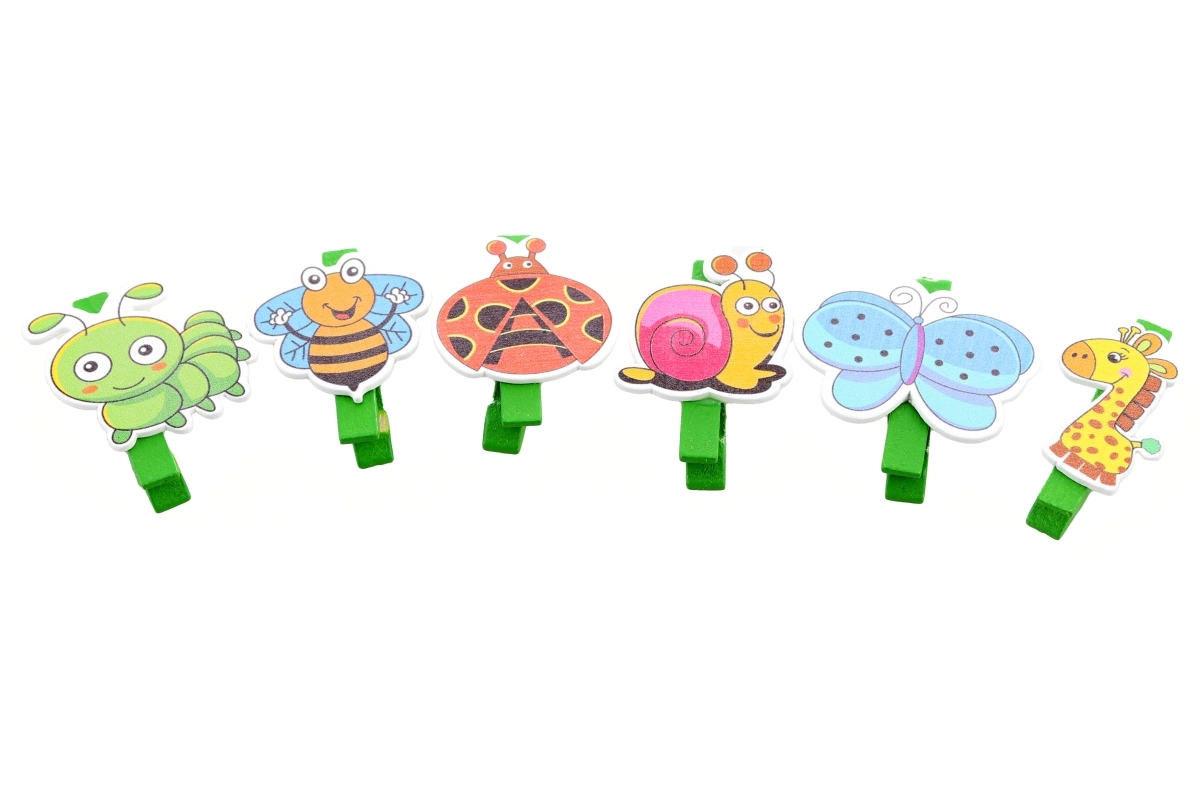 Ovi drveni klipsovi sa životinjama idealni su za pričvršćivanje kartica, fotografija, sitnih bilježaka ili kao dekoracija pri pakiranju darova. Prirodno drvo i simpatični motivi dat će vašim projektima originalan štih i ugodan izgled.