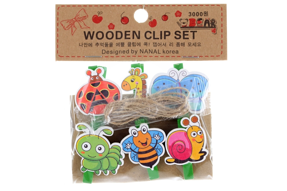Stilski set drvenih klipsova s motivima životinja za dekoracije, pakiranje darova i kućnu organizaciju. U pakiranju se nalazi 6 komada klipsova od kvalitetnog drva. Univerzalna primjena, prirodan izgled i praktična veličina uklapaju se u svaki dom i ured.