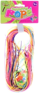 Sadržaj pakiranja uključuje gumene uzice za pletenje i plastične dodatke u obliku dudi, koji gotovim uradcima daju razigran izgled. Set je lagan i kompaktan, pakiran u vrećicu – idealno za putovanja i kućno stvaranje.