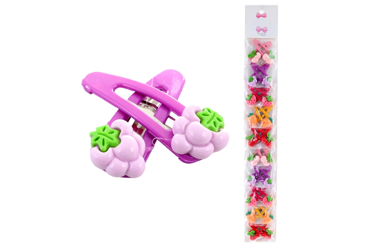 Slatke ukosnice s voćnim motivom dat će vašoj frizuri šarm i boje. U svakom pakiranju nalaze se 2 kvalitetne ukosnice u različitim bojama, idealne za svakodnevno nošenje. Isporučujemo isključivo u pakiranju od 10 komada (10× set od 2 kom) u praktičnoj vrećici.